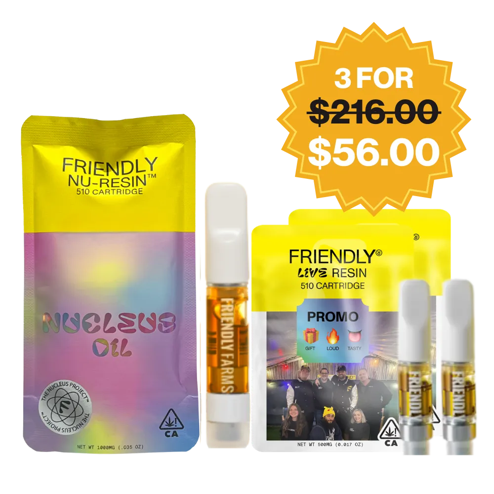 Buy any Friendly 1g Nucleus Cartridge at 25% off, get 2 Live Resin .5g Cartridges for $2.